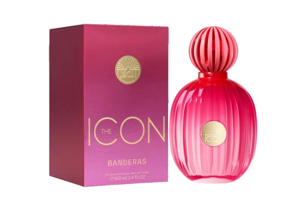 The Icon eau de Parfum da grife Antonio Banderas, família olfativa oriental floral, perfume feminino espanhol lançado em 2023.