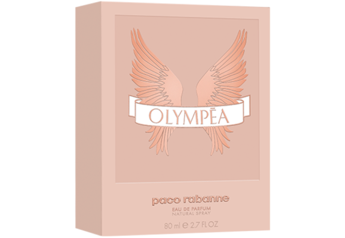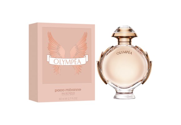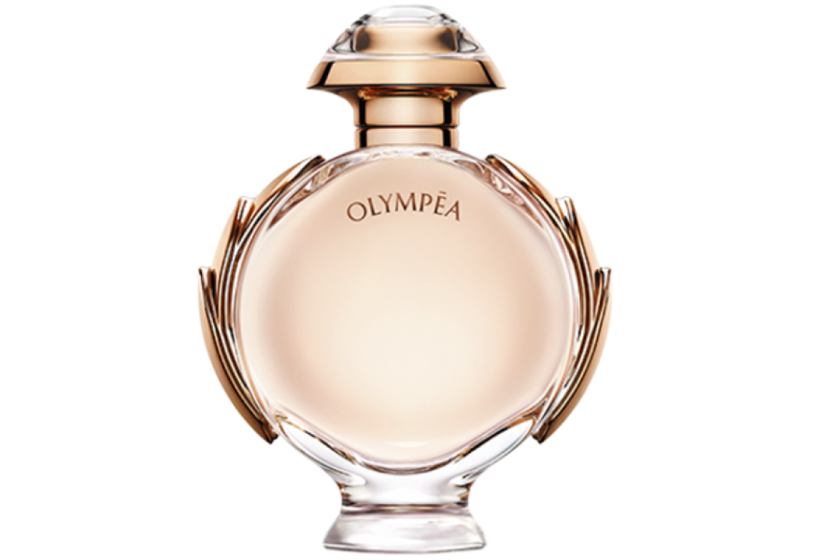 Olympéa Eau de Parfum da grife Rabanne, família olfativa oriental floral, perfume feminino francês lançado em 2015.