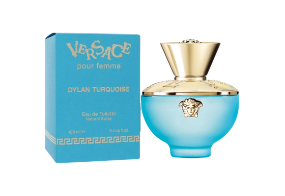 Dylan Turquoise Pour Femme Eau de Toilette da grife Versace, família olfativa floral frutado, perfume feminino italiano lançado em 2020.
