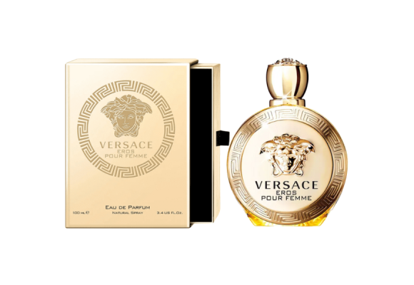 Eros Pour Femme Eau de Parfum da grife Versace, família olfativa floral amadeirado, perfume feminino italiano lançado em 2014.