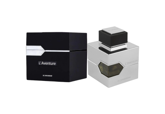 L´Aventure Eau de Parfum da grife Al Haramian, família olfativa chipre frutado, perfume masculino dos Emirados Árabes Unidos lançado em 2016.