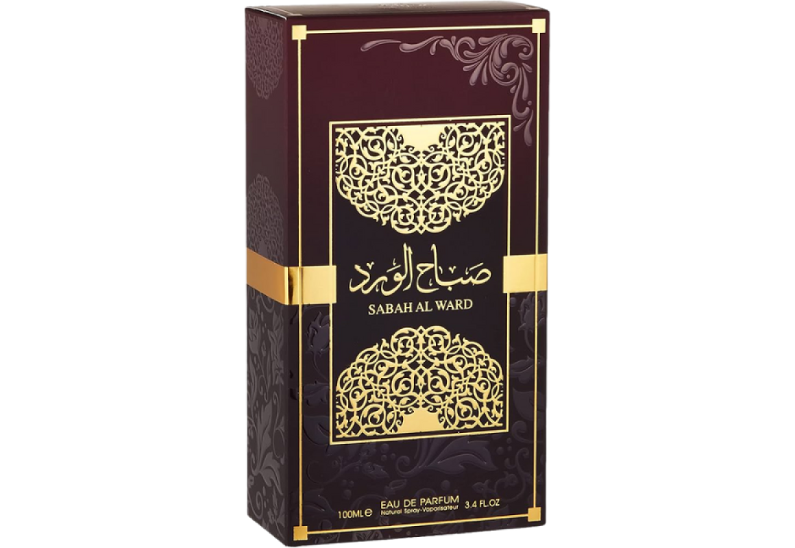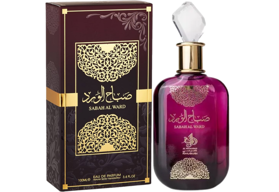 Sabah Al Ward Eau de Parfum da grife Al Watanaih, família olfativa oriental floral, perfume feminino dos Emirados Árabes Unidos.
