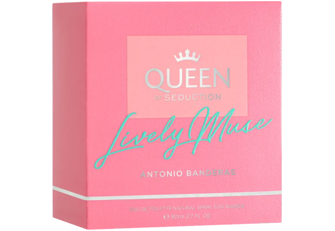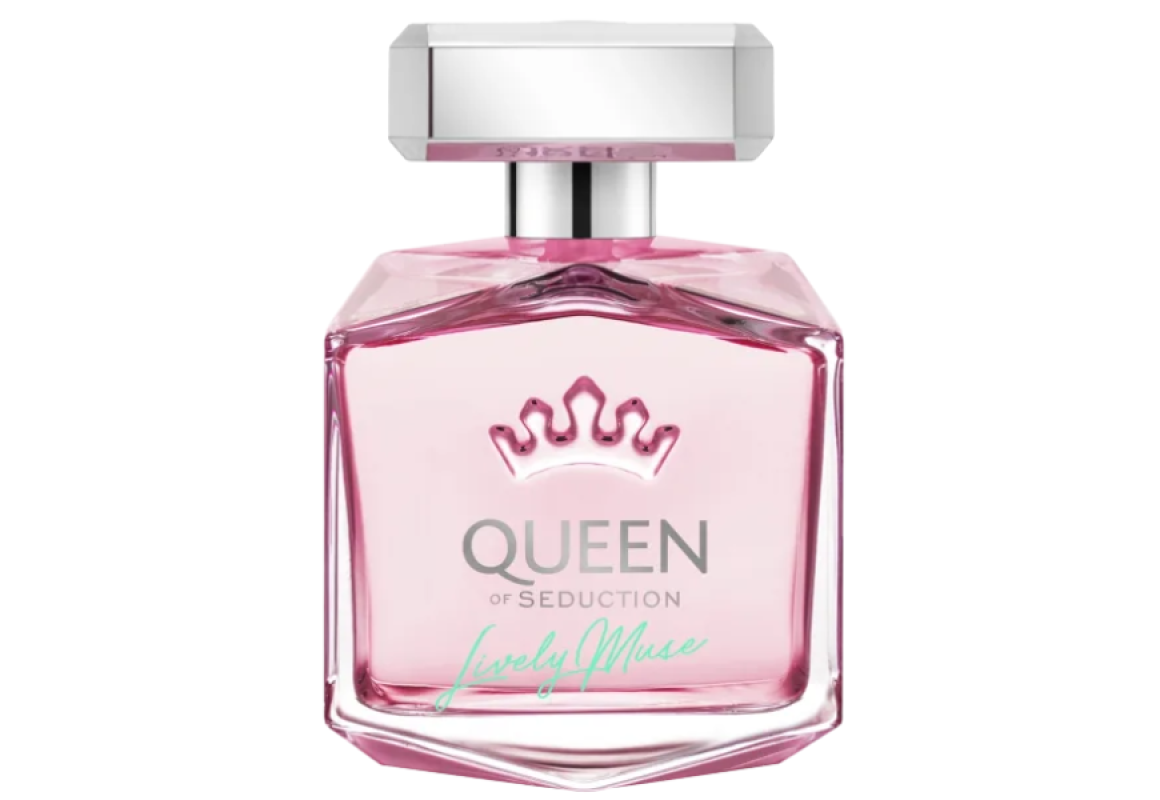 Queen Of Seduction Lively Muse Eau de Toilette da grife Antonio Banderas, família olfativa floral frutado, perfume feminino espanhol lançado em 2021.